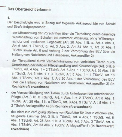 Immer wieder geraten Schafhalter unter Beschuss von Seiten ungenügend informierter Personen, Medien etc. betreffend des Witterungsschutzes bei dauerhafter Haltung im Freien. Wir möchten euch ermutigen diese Konflikte keinenfalls zu schüren, sondern zu informieren und aufzuklären. Schafe sind auch im Winter durch ihr Wollkleid in hohem Masse gegen nasse, kalte Witterungen geschützt. Zusätzlichen bieten Bäume, Baumgruppen oder Hecken natürliche Windfänge. Nachfolgend findet ihr den Freispruch eines Berufskollegen durch das Obergericht Muri AG.